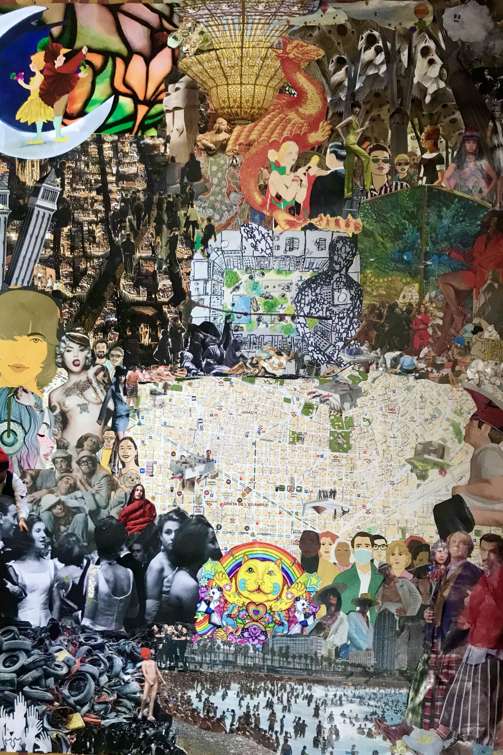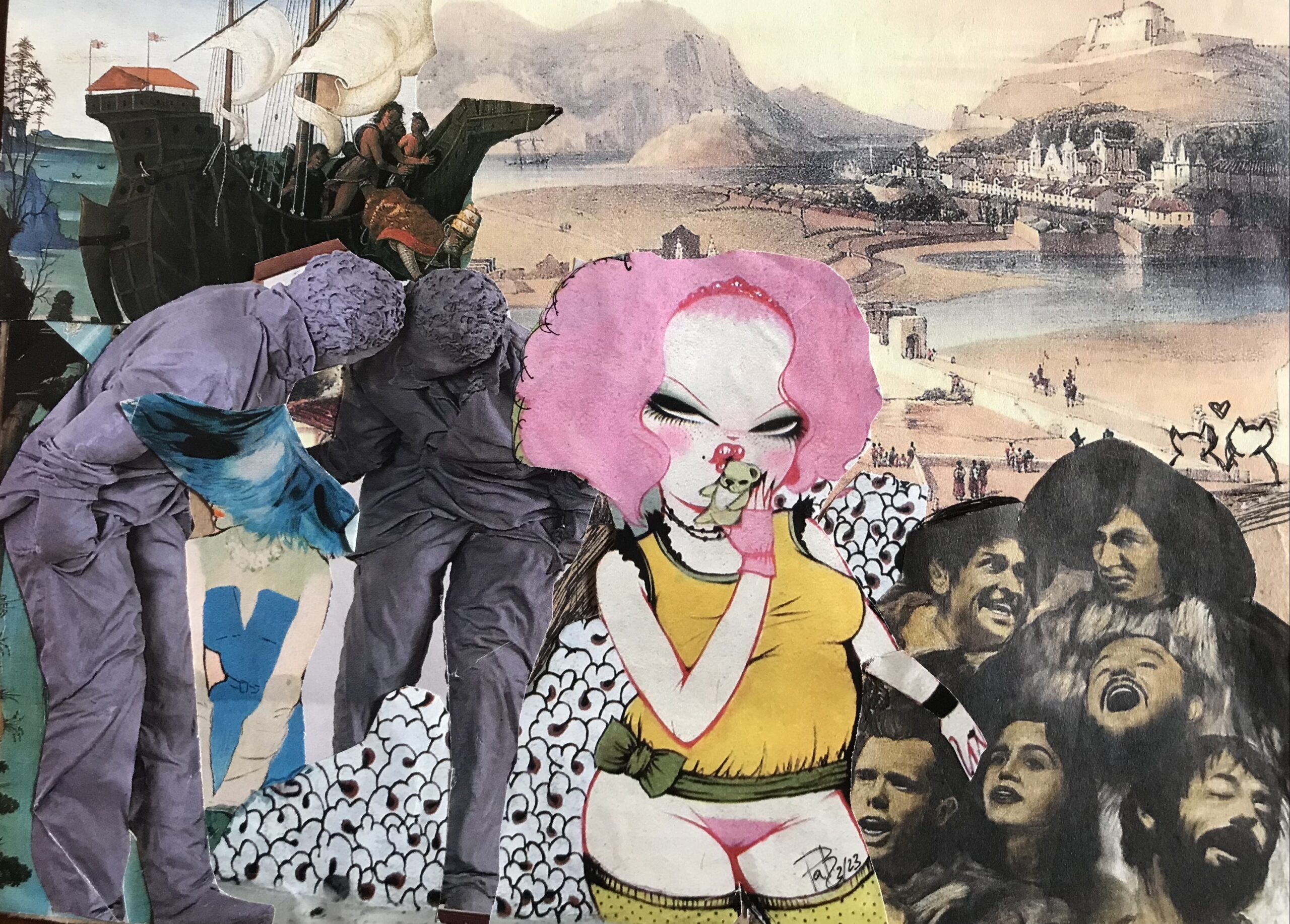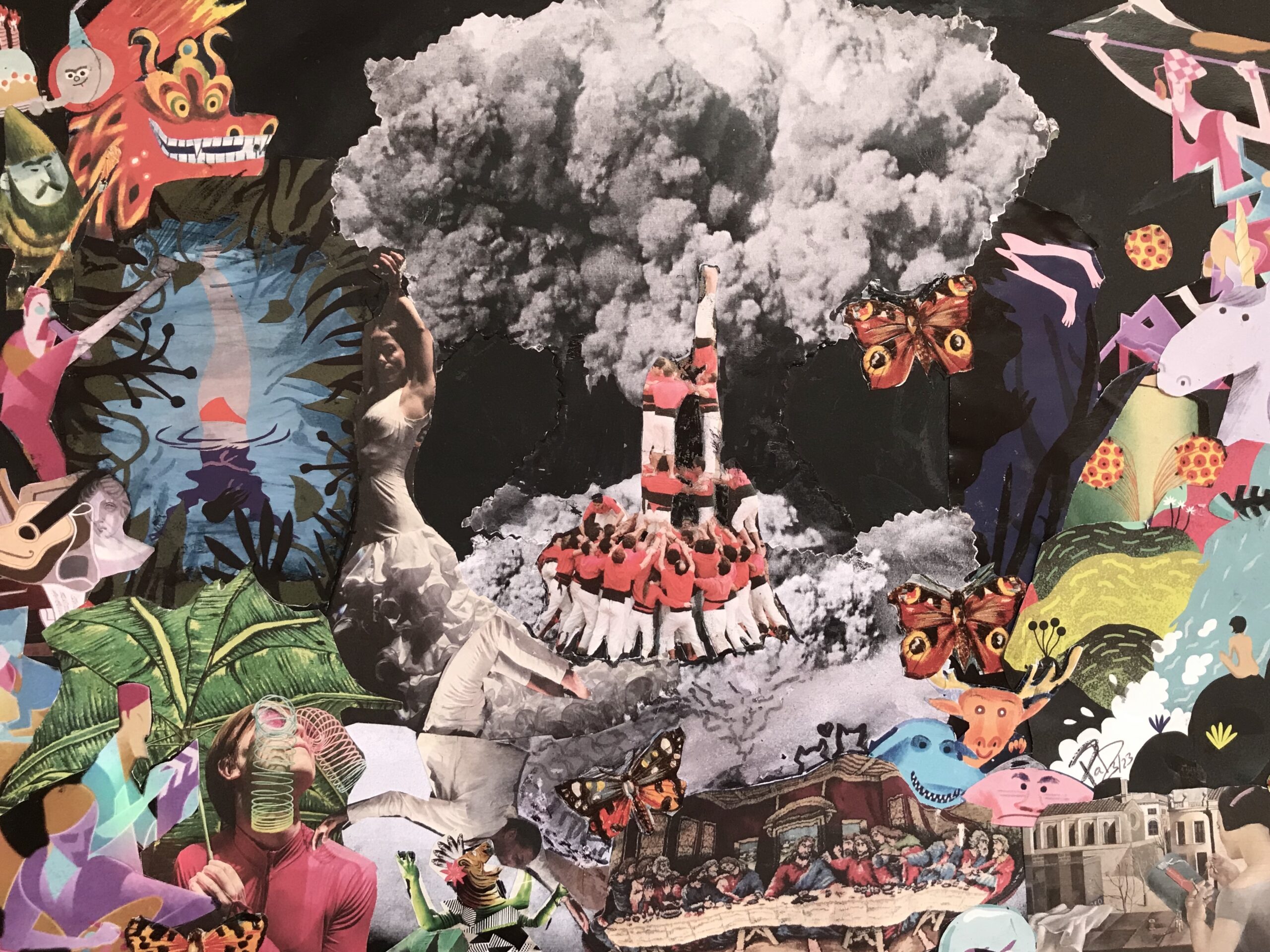 El collage de Pat mezcla en sus piezas muchos mundos,
