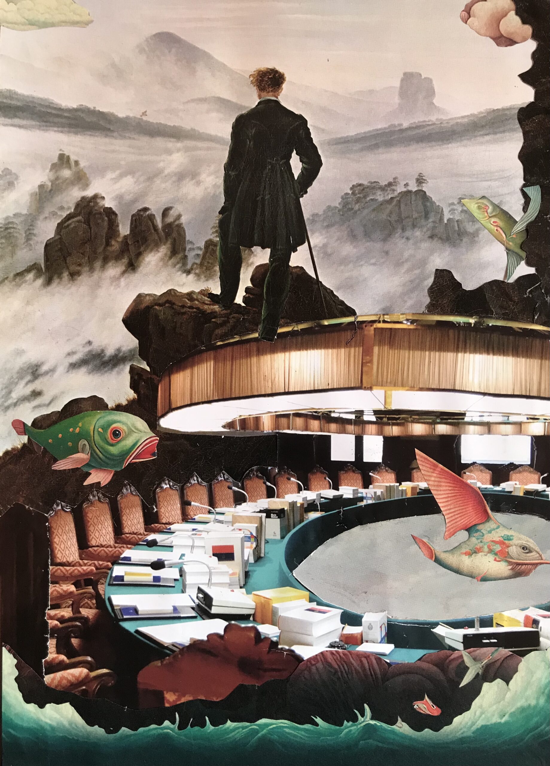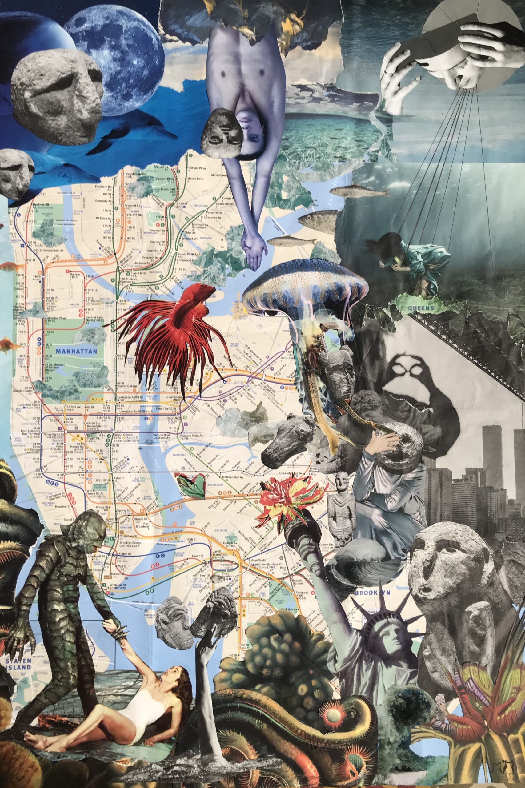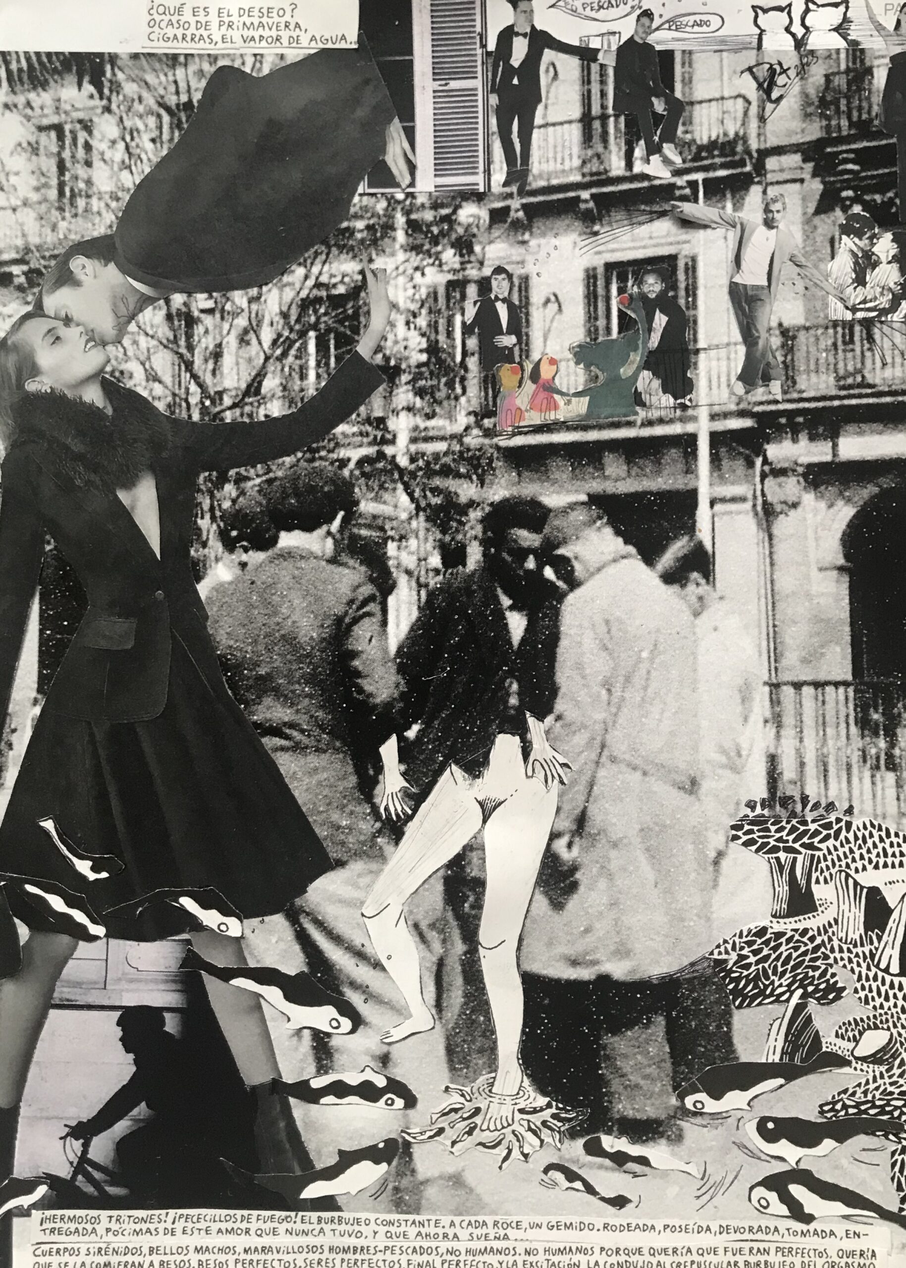 El collage de Pat mezcla en sus piezas muchos mundos,